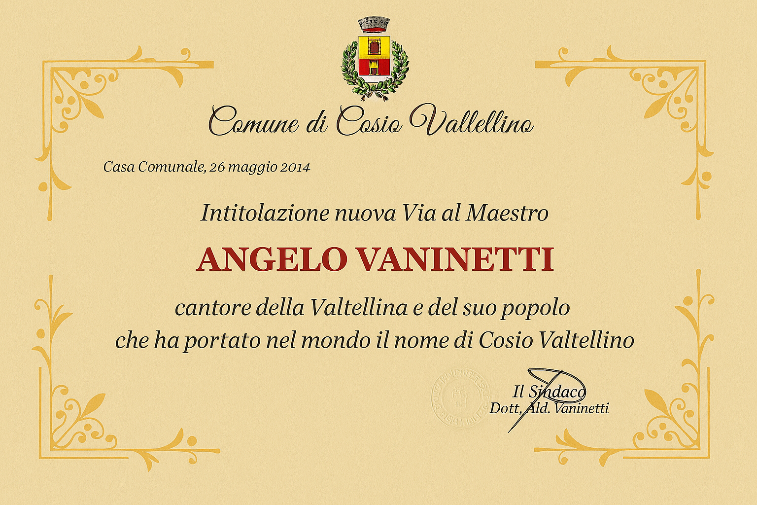 Comune di Cosio Valtellino intitolazione nuova via (vedi)